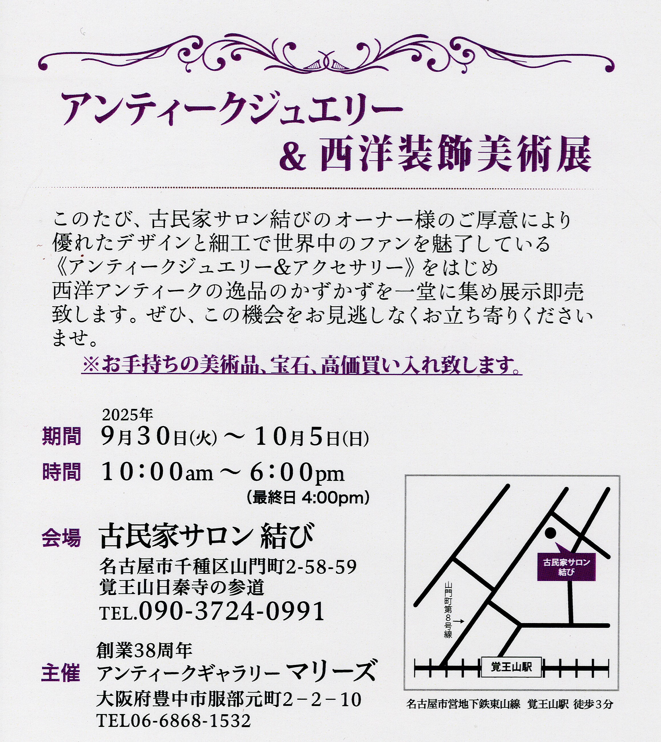 京都大アンティークフェアのマリーズのブース(場所)が変更になりました。